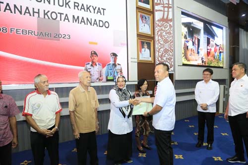 Di akhir kegiatan, di lakukan Penyerahan secara simbolis kepada 8 orang Sertifikat untuk Rakyat Kegiatan Redistribusi Tanah T.A. 2022. Penyerahan Sertifikat ini dilakukan oleh Wali Kota Andrei Angouw didampingi Wakil Wali Kota Richard Sualang, Kakanwil Badan Pertanahan Sulut dan Kepala Kantor Badan Pertanahan Manado. (Mal)