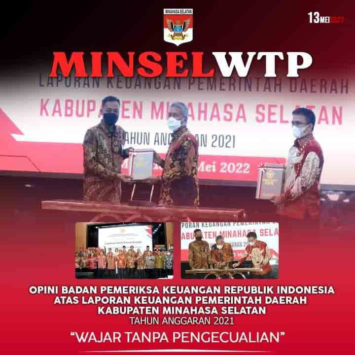 - opini wajar tanpa pengecualian dari bpk berdasarkan pemeriksaan laporan keuangan daerah kabupaten minahasa selatan tahun anggaran 2021.