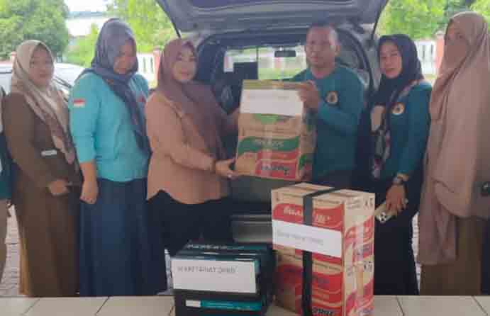 Bantuan di serahkan berupa beras 135 kg, gula 7 kg, mie instan 8 karton, telur ayam 5 bak, ikan kaleng 15 kaleng dan teh 2 dos dan kopi 1 gantung.