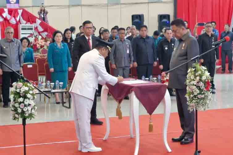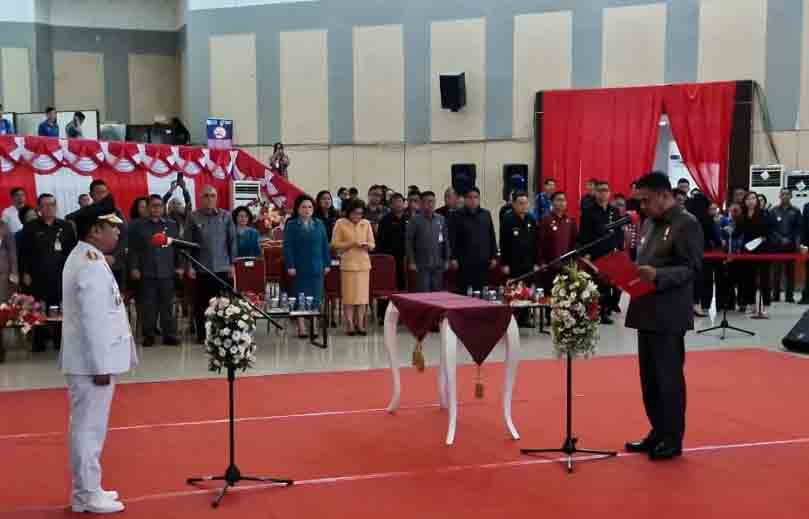 Minut-Pjs Bupati Minahasa Utara (Minut) Reza Dotulong menghadiri pengambilan sumpaj/Janji Penjabat Kepala Daerah Kabupaten Kepulauan Talaud tahun 2024 oleh Gubernur Sulut Olly Dondokambey, Senin (28/10/2024) di aula Mapallus kantor Gubernur.