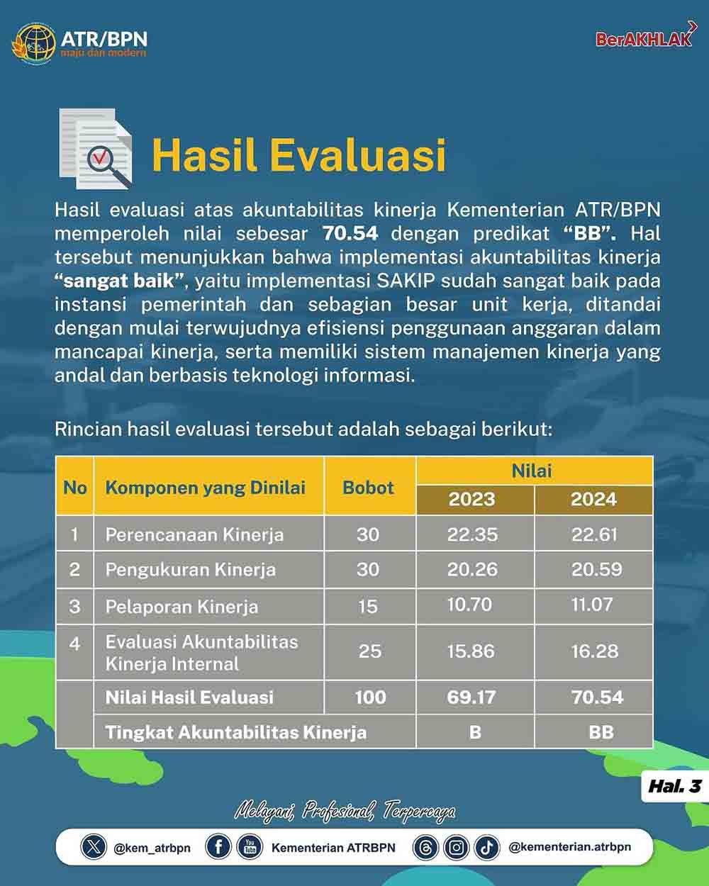 Ada berita baik nih, nilai Sistem Akuntabilitas Kinerja Instansi Pemerintah (SAKIP) Kementerian ATR/BPN meningkat dari tahun 2023 predikat B (Baik) menjadi predikat BB (Sangat Baik) pada tahun 2024.