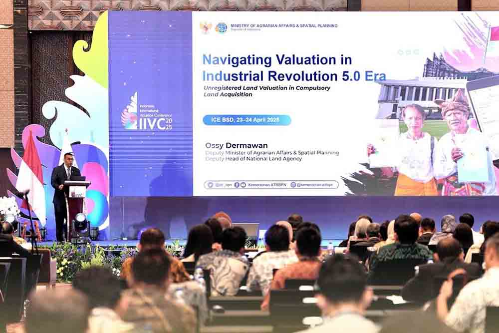 “Pembangunan memang penting, tapi kita tidak boleh meninggalkan masyarakat yang lahannya diambil. Kita ingin setiap proses pengadaan tanah juga jadi awal bagi kehidupan yang lebih baik,” tegas Wamen Ossy, dalam Indonesia International Valuation Conference (IIVC) 2025, di Tangerang Selatan, Kamis (24/04/2025). (HmsATR BPN/NAL)