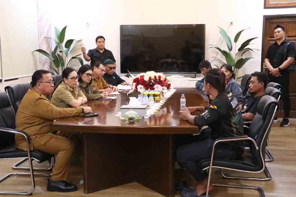 Minahasa-Bupati Minahasa, Robby Dondokambey, S.Si,MAP bersama Wakil Bupati Vanda Sarundajang, S.S., di dampingi Sekretaris Daerah Kabupaten Minahasa, Dr. Lynda D. Wantania, M.Si, menerima aksi demo damai Warga Desa Kalasey Dua,Kabupaten Minahasa, bertempat di halaman Kantor Pemkab,Senin (01/09/2025).