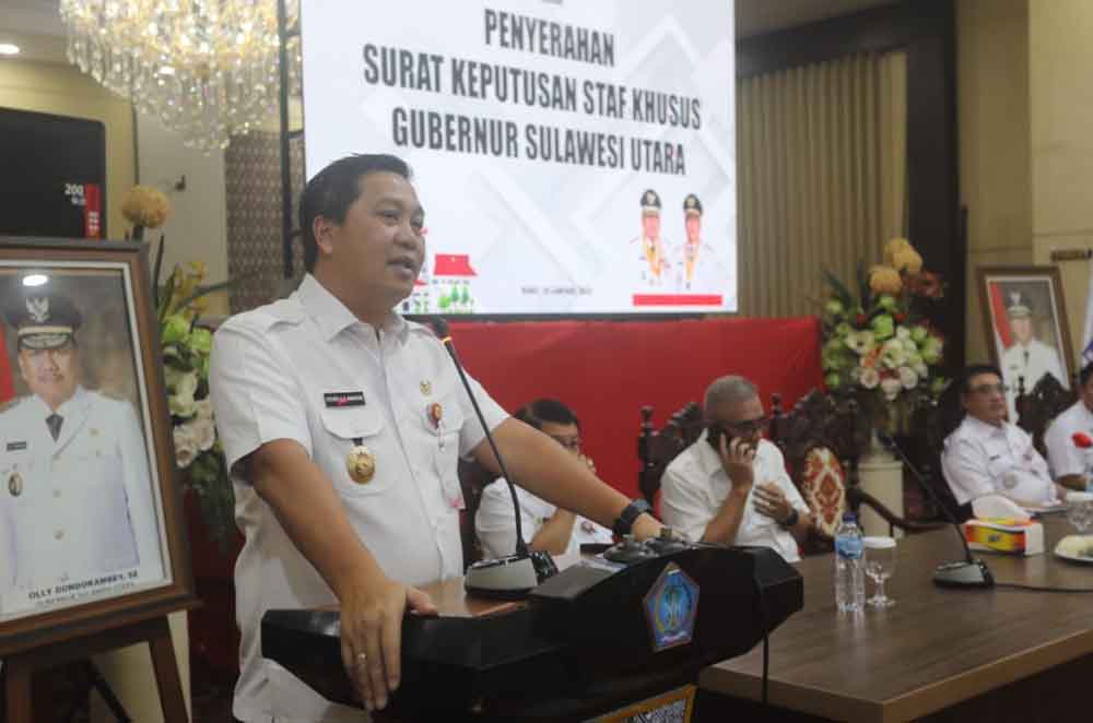 Manado – Wakil Gubernur Sulut Steven Kandouw menyerahkan Surat Keputusan Staf Khusus Gubernur Sulut, di Ruang CJ Rantung, Rabu (25/01/2023).
