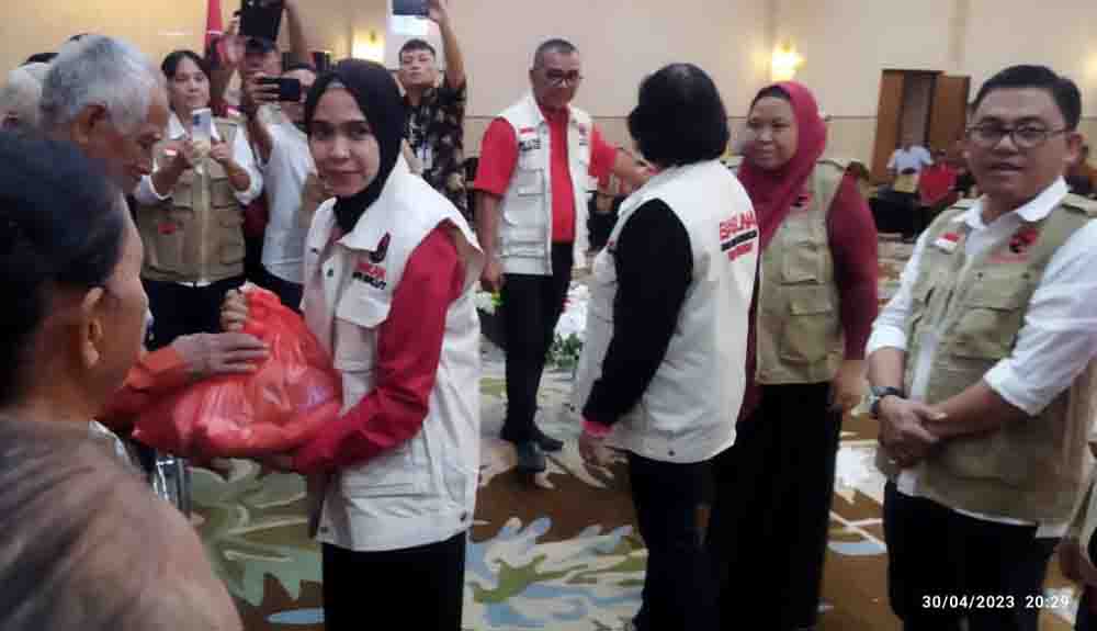 Usai pelantikan, BAGUNA DPD PDI Sulut dan Korwil Bolmong Raya juga menyalurkan bantuan berupa paket sembako kepada 50 lansia, warga pra sejahtera dan bantuan keluarga miskin. (Wandy)