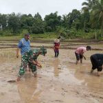 Dukung Ketahanan Pangan, Babinsa Kodim 1311/Morowali Dampingi Penanaman Padi Kelompok Tani di Mori Atas