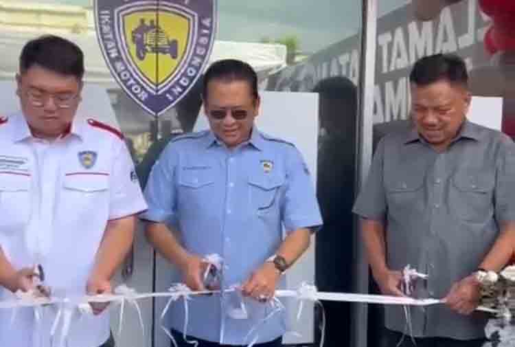 Manado- Ketua Umum Ikatan Motor Indonesia (IMI) Pusat, Bambang Soesatyo meresmikan Kantor Sekretariat IMI Sulawesi Utara di Kawasan Transmart Kairagi Manado, Sabtu (13/7/2024).
