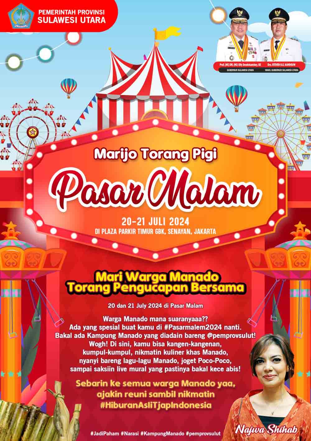 Diketahui, Perayaan Pengucapan Syukur di Jakarta ini digelar oleh Narasi TV Pimpinan Najwa Shihab dan pihak Pemprov Sulut berlangsung hingga Minggu (21/07/2024). (Advetorial Diskominfo Sulut)