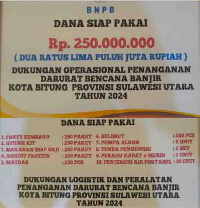 Wali Kota Bitung mengatakan bahwa bantuan tersebut diharapkan dapat memberikan dukungan yang signifikan untuk memulihkan kondisi warga di kedua Kelurahan yang terdampak banjir.