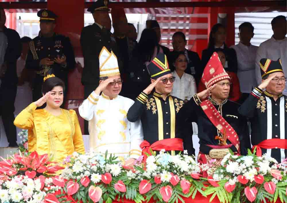 Suasana penuh kebersamaan dan semangat persatuan tersebut berlangsung di bawah tribun Lapangan Koni Sario Manado, menegaskan komitmen para pemimpin daerah dalam menjaga nilai-nilai perjuangan dan kebangsaan. (**Ighel)
