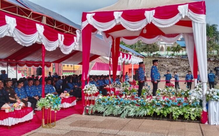 Morut-Bupati Morowali Utara ( Morut), Dr dr Delis Julkarson Hehi MARS, bertindak sebagai inspektur upacara pada puncak Peringatan Hari Ulang Tahun (HUT) Korps Pegawai Republik Indonesia (KORPRI) Ke-54 tingkat Provinsi Sulawesi Tengah (Sulteng), yang di pusatkan di pelataran kantor Bupati Morut, Jumat (28/11/2025) pagi.