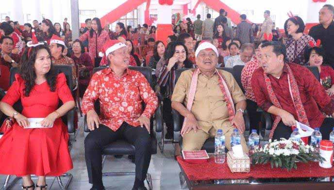 Perayaan Natal perdana yang berlangsung di Aula Waleta Kantor Bupati Minahasa Selatan ini, turut di hadiri Wagub Steven Kandouw dan Sekprov Steve Kepel serta pejabat Pemprov Sulut.