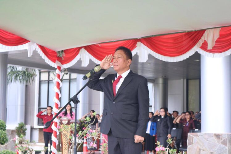 Upacara berlangsung khidmat dengan di hadiri Wakil Bupati Brigjen TNI (Purn.) Theodorus Kawatu, S.I.P, bersama jajaran Forkopimda, para Asisten,Kepala OPD, serta ratusan peserta upacara dari ASN dan pelajar.