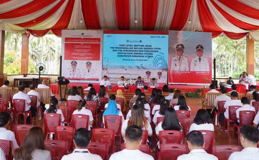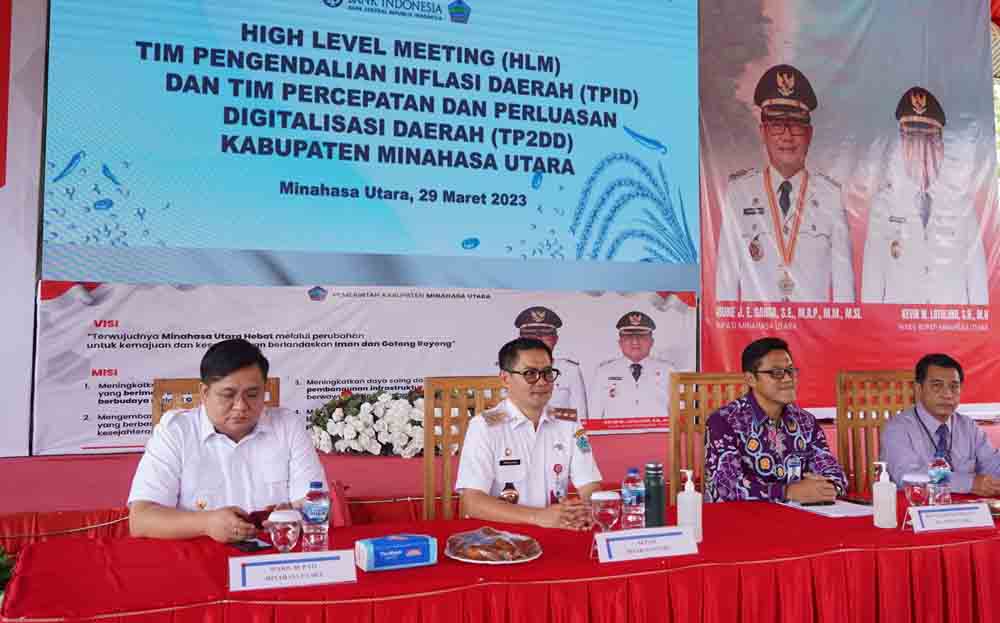 Bertempat di JG Centre, Perwakilan Bank Indonesia Sulut bersama Tim Percepatan Perluasan Digitalisasi Daerah (TP2DD) dan TPID Kabupaten Minahasa Utara Menggelar High Level Meeting (HLM) Rabu (29/03/2023.