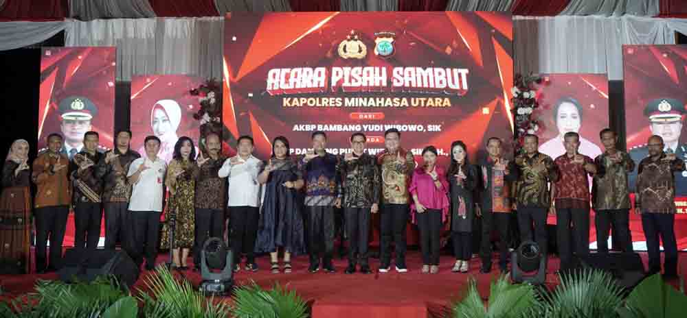 Minut-Pemerintah Kabupaten Minahasa Utara (Minut) mengadakan acara malam pisah-sambut Kapolres Minut yang berlangsung di JGC Airmididi, Rabu (12/07/2023).