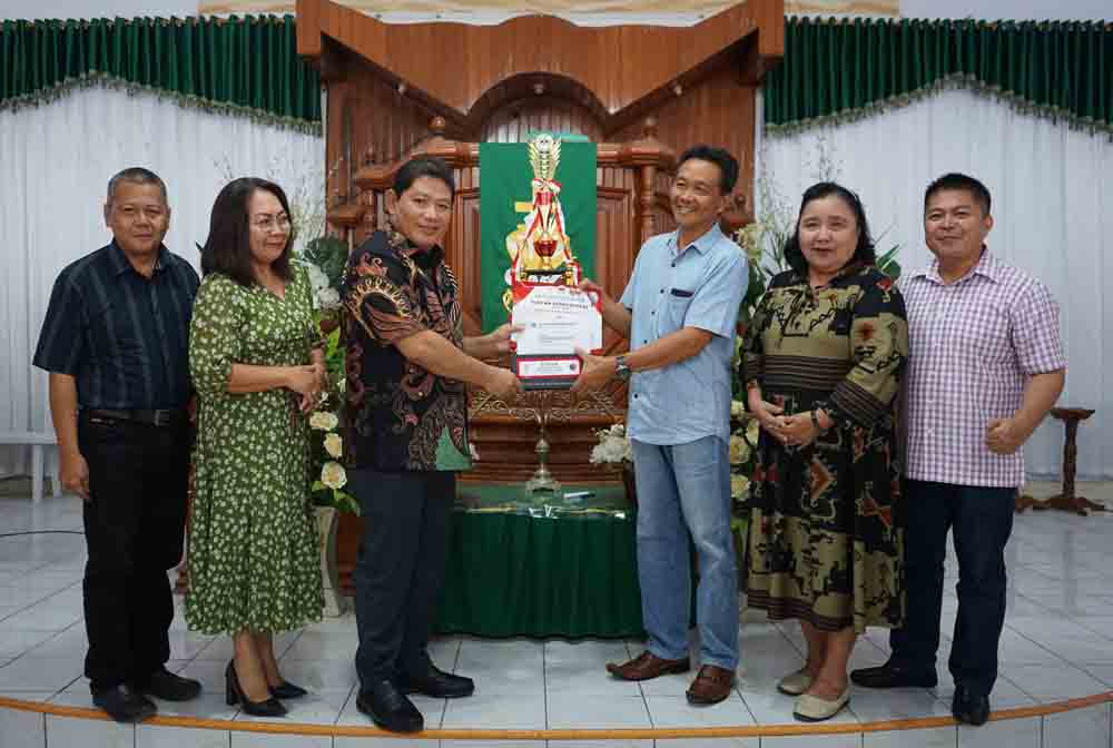 Minahasa-Penjabat Bupati Minahasa Pnt. Dr. Jemmy Stani Kumendong, M.Si,menghadiri Ibadah penutupan Kegiatan Hari Persatuan (Hapsa) Pria/Kaum Bapa (P/KB) Sinode GMIM, dirangkaikan penyerahan hadiah pemenang dan pembubaran Panitia Hapsa PK/B,bertempat Gedung Gereja GMIM Eben Haezer Kapataran,Selasa (18/06/2024).