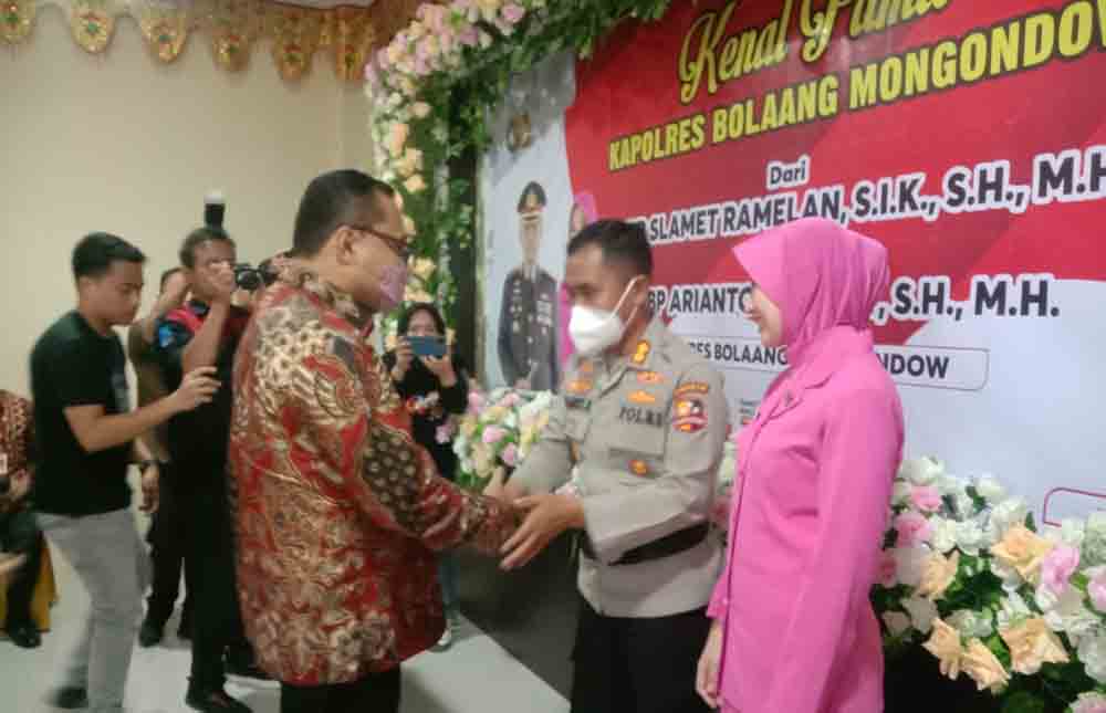 “Selaku pemerintah, Bapak Bupati dan Pemkab Bolmong serta masyarakat, mengucapkan terima kasih kepada kapolres lama yang telah turut menjaga wilayah Bolmong hingga terus kondusif, dan selamat bertugas ditempat baru, semoga lebih sukses bersama keluarga, selanjutnya kami ucapkan selamat datang “Dega Nion Don” kepada pejabat Kapolres baru, AKBP. Arianto Salkery., selamat bertugas semoga dengan kehadiran kapolres baru, Bolmong lebih aman dan terkendali,” ucap Tahlis mengakhiri sambutannya.