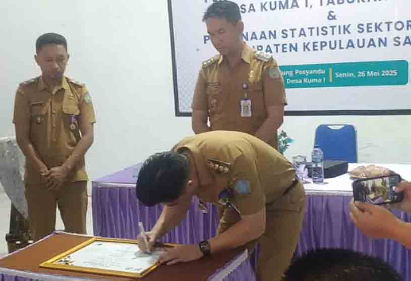 Tahuna-Ditandai dengan pemukulan gong oleh Bupati Kabupaten kepulauan Sangihe Michael Thungari SE, MM, Desa Kuma 1 kecamatan Tabukan tengah resmi dicanangkan sebagai Desa Cinta statistik (Desa Cantik) pada Senin (26/05/25).