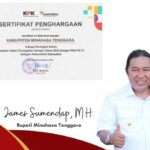Indeks Pencegahan Korupsi 96,71, Bupati James Sumendap Diganjar Penghargaan