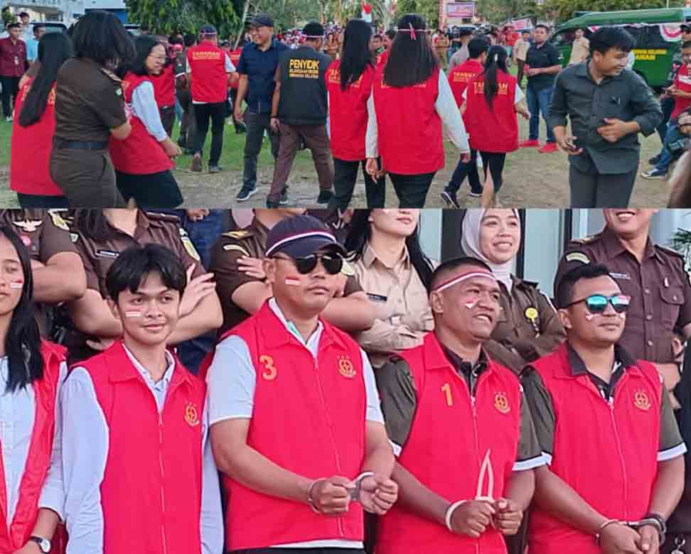 Namun setelah di cek, ternyata para “tahanan” ini merupakan personil pegawai dan staf di Kejari Minsel-Mitra yang turut memeriahkan Pawai Pembangunan serangkaian dengan hari kemerdekaan Republik Indonesia ke-79.