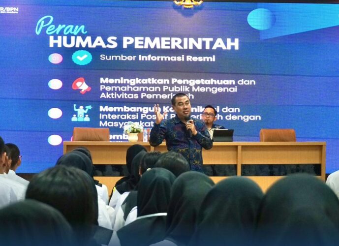 “Jangan sampai orang luar sibuk membicarakan ATR/BPN, sementara kita yang di dalam justru tidak tahu apa-apa. Kita semua adalah humas bagi lembaga ini,” tegas Bagas Agung Wibowo di hadapan para peserta Latsar CPNS.