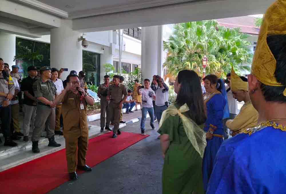 Saat menerima Pendemo, Kaban Ferry Sangian menyambut di depan Lobby Utama Kantor Gubernur Sulut dengan baik.