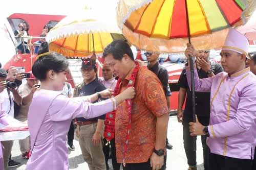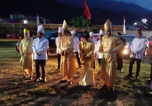 Bertindak selaku tamu kehormatan,Wagub Kandouw bersama rombongan di sambut oleh Bupati kabupaten Sitaro Evangalian Sasingen, SE, bersama Wakil Bupati Drs Jhon palandung M.Si, serta unsur Forkompinda secara adat.