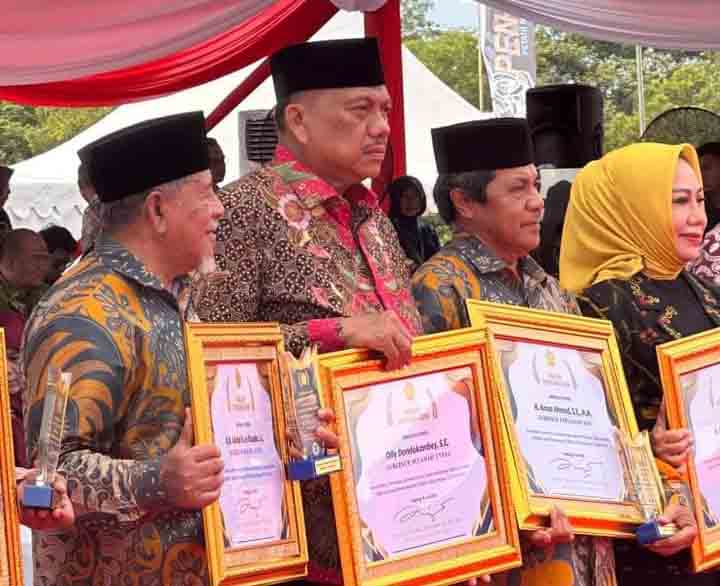 “Telah memberikan kinerja dan prestasi yang baik dalam mendukung dan memajukan sektor pertanian,” bunyi surat Keputusan Menteri Pertanian RI nomor 277/KPTS/KP.590/M/06/2023 tentang tentang Pemberian Penghargaan Menteri Pertanian dalam Rangka Pekan Nasional Petani Nelayan XVI tahun 2023 yang diberikan Kepala Badan Penyuluhan dan Pengembangan SDM Pertanian Prof Dedi Nursyamsi pada penutupan Penas XVI, Kamis (15/6/2023).