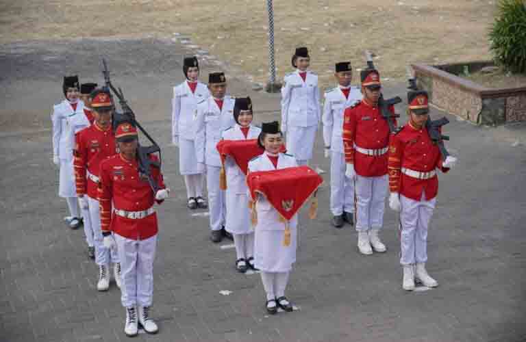 Acara diawali dengan upacara pengibaran bendera pusaka merah putih oleh anggota Paskibraka, bersama pasukan kehormatan dari unsur TNI-Polri dengan formasi lengkap.