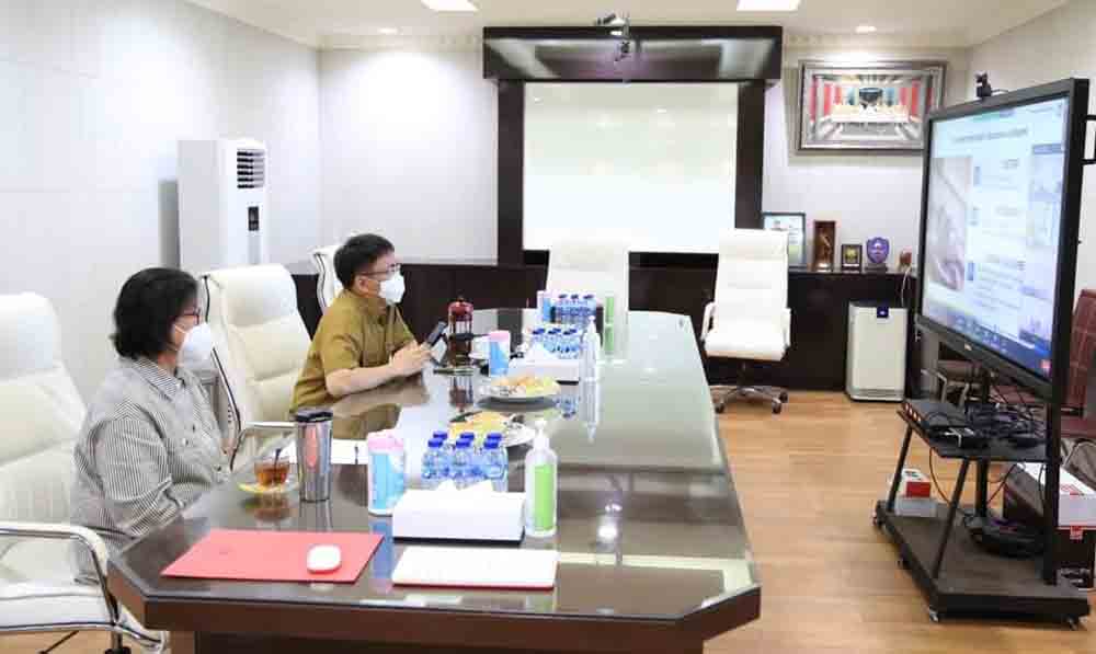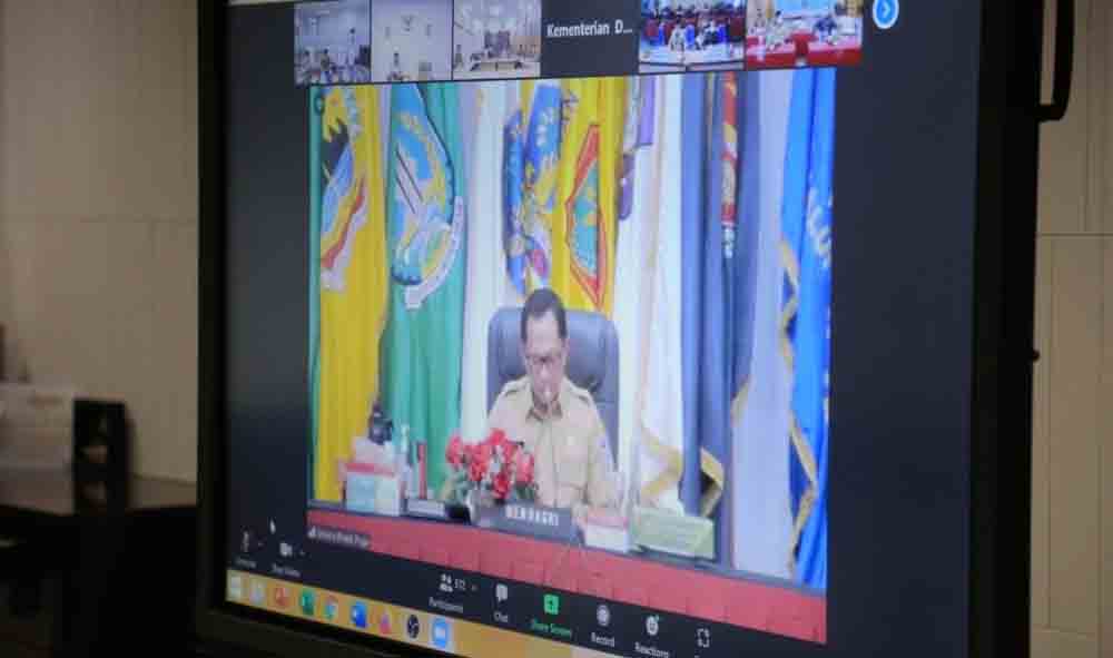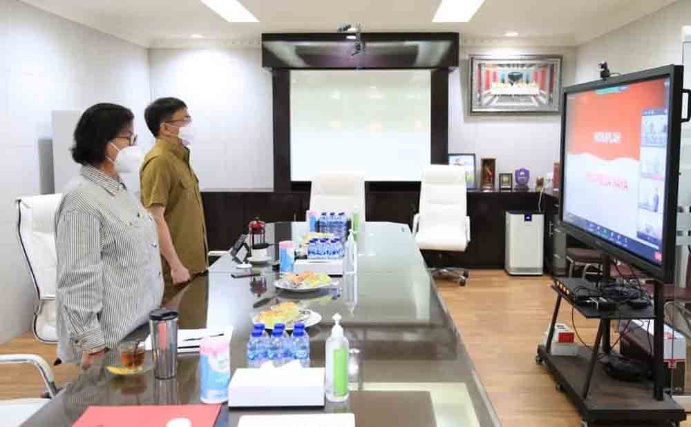 Manado– Wali Kota Manado Andrei Angouw di dampingi Ketua DPRD Kota Manado Dra. Altje Dondokambey M.Kes, Apt, mengikuti Video Conference bersama Mendagri, Ketua KPK, Kepala LKPP dengan kepala Daerah dan Ketua DPRD Provinsi, Kabupaten/Kota. bertempat di ruang Kerja Walikota, Senin (24/01/2022).