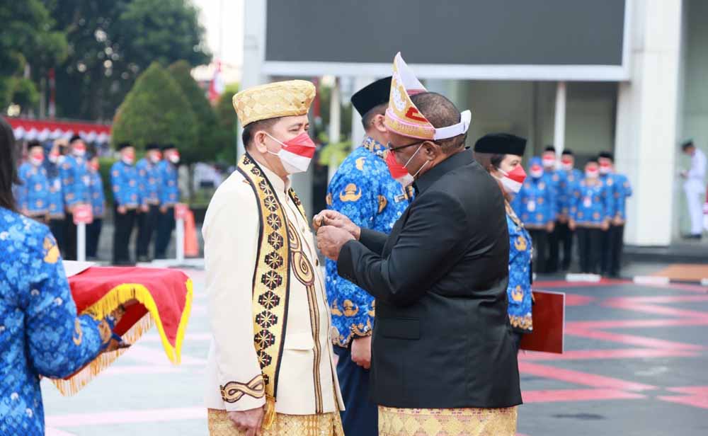 Penghargaan tersebut disampaikan oleh Wakil Menteri Dalam Negeri (Wamendagri) John Wempi Wetipo pada saat upacara peringatan Hari Ulang Tahun (HUT) RI ke-77 di Kantor Kementerian Dalam Negeri, Jakarta, Rabu (17/8/2022).