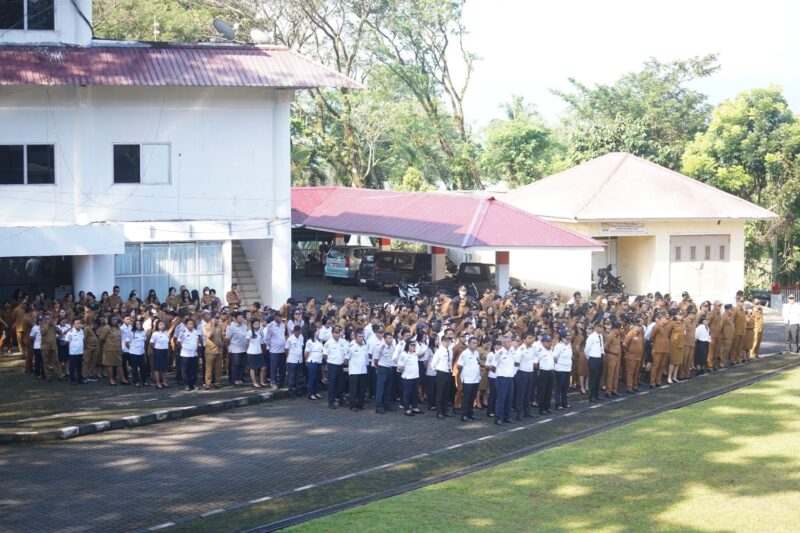 Apel tersebut dipimpin langsung oleh Bupati Joune Ganda dan diikuti seluruh ASN di lingkungan Pemkab Minahasa Utara.