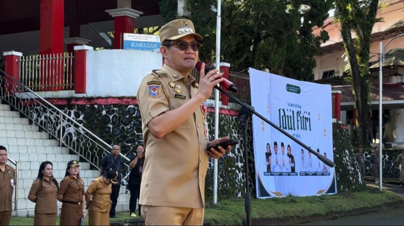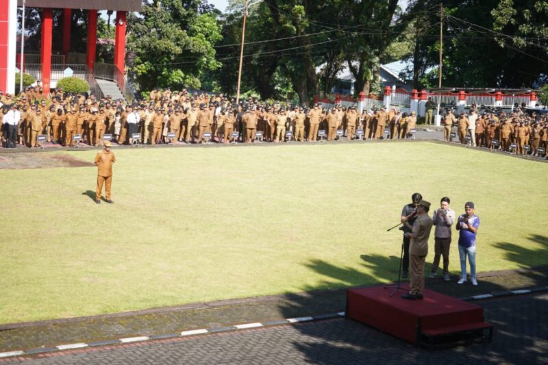 Dalam apel perdana yang digelar di halaman Kantor Bupati, Senin (30/3/2026), Bupati Joune Ganda memerintahkan pengecekan ketat kehadiran ASN di seluruh perangkat daerah.