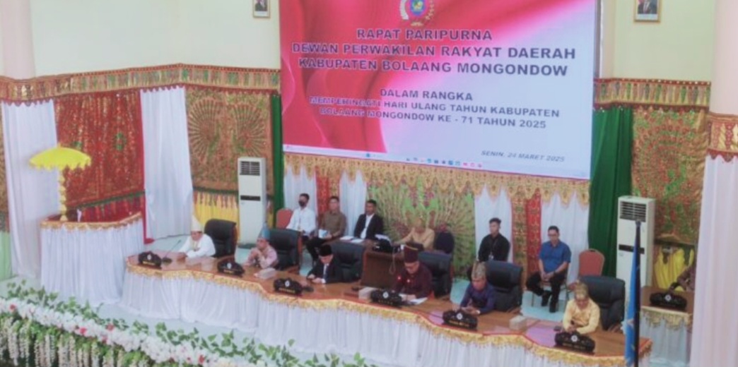 BOLMONG – Dewan Perwakilan Rakyat Daerah Bolaang Mongondow (DPRD) menggelar rapat paripurna istimewa peringatan Hari Ulang Tahun (HUT) Kabupaten Bolaang Mongondow (Bolmong) ke-71, Senin 24 Maret 2025.