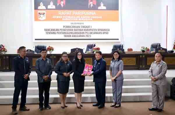 Minahasa,-Dewan Perwakilan Rakyat Daerah (DPRD) Kabupaten Minahasa menggelar paripurna dalam Rangka Pembicaraan Tingkat 1 Rancangan Peraturan Daerah Tentang Laporan Pertanggung Jawaban APBD Anggaran 2023, bertempat di ruang sidang,Jumat (02/08/2024).