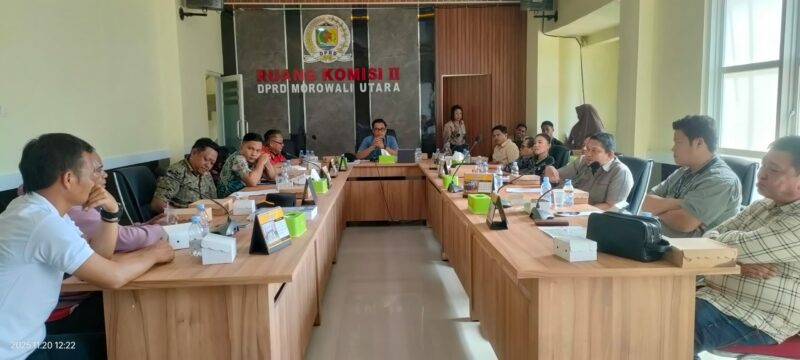 Morut-Lintas Komisi DPRD Kabupaten Morowali Utara (Morut) menggelar Rapat Dengar Pendapat (RDP) dengan PT Timur Perkasa Mineralindo (TPM) Site PT Genba Multi Mineral (GMM), menindaklanjuti surat Kepala Desa (Kades) Bimor Jaya Kecamatan Petasia Timur, sekaitan dengan permohonan mediasi soal lahan perkebunan sawit masyarakat yang diduga terkena dampak dari adanya aktivitas pertambangan pihak Perusahaan, di ruang Komisi II DPRD Morut, Kamis (20/11/2025) siang.