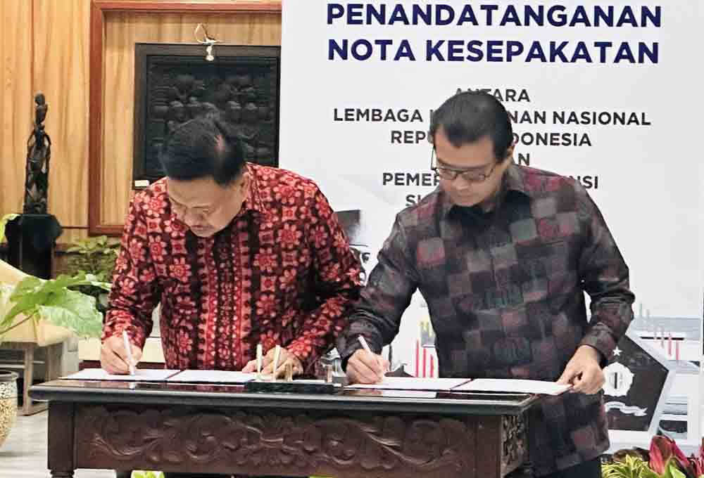 Penandatangan MoU dilakukan Gubernur Provinsi Sulut Olly Dondokambey dengan Gubernur Lemhannas RI Andi Wijayanto, di Ruang Nusantara Gedung Trigatra Lt. I Lemhannas RI, Jakpus, Jumat (09/06/2023).