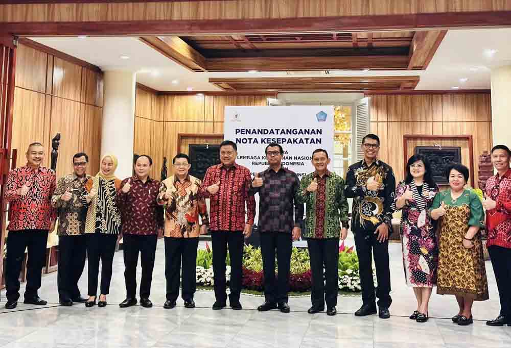 Penandatangan MoU dilakukan Gubernur Provinsi Sulut Olly Dondokambey dengan Gubernur Lemhannas RI Andi Wijayanto, di Ruang Nusantara Gedung Trigatra Lt. I Lemhannas RI, Jakpus, Jumat (09/06/2023).