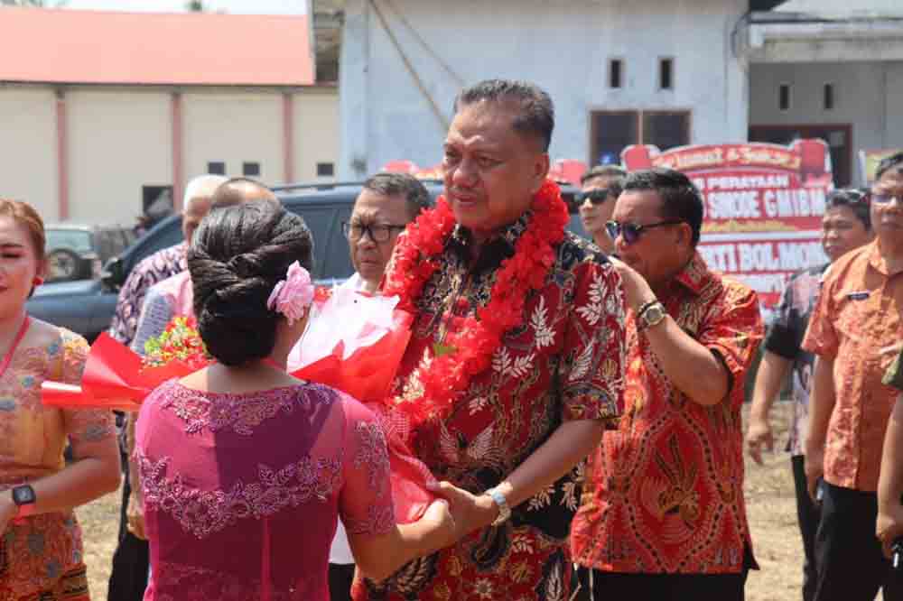 Turut hadir pimpinan BPMS GMIBM, Ketua Kompelsus P/KB Sinode GMIBM, Pnt Welti Komaling, Penjabat Bupati Bolmong, Limi Mokodompit, jajaran Forkopimda serta tokoh-tokoh dan pemuka agama di Kabupaten Bolmong.(Advetorial Diskominfo Sulut)