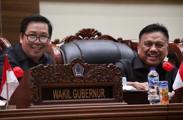 Manado,-Gubernur Provinsi Sulut Prof DR (Hc) Olly Dondokambey dan Wakil Gubernur Steven Kandouw menghadiri Rapat Paripurna DPRD Provinsi Sulut dalam Penyampaian/Penjelasan Gubernur terhadap KUA dan PPAS APBD Provinsi Sulut Tahun Anggaran 2025, di Ruang Rapat Paripurna DPRD Provinsi Sulut, Senin (22/7/2024).