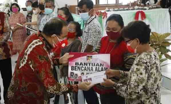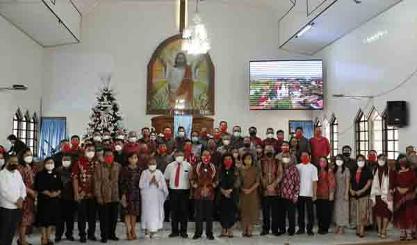 Usai Ibadah perayaan penyerahan berbagai jenis bantuan bingkisan Natal baik ke pihak Gereja maupun masyarakat yang diserahkan Bupati, Ketua TP PKK Minahasa, Sekda Minahasa, Ketua Dharma Wanita Persatuan dan Forkopimda Minahasa. (Ronny/Adve)