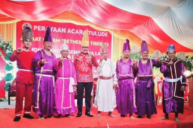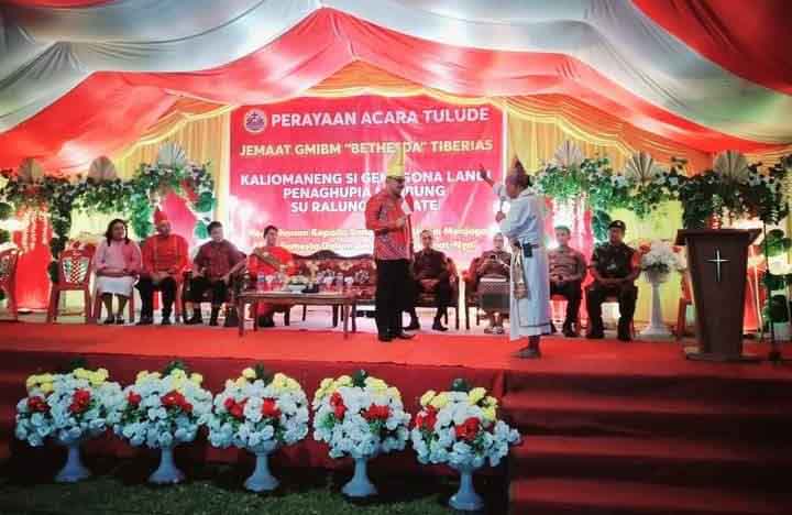Bolmong – Penjabat Bupati Bolmong Ir. Limi Mokodompit,MM, menghadiri upacara adat Tulude di Desa Tiberias, Kecamatan Poigar, Sabtu (04/02/2023).