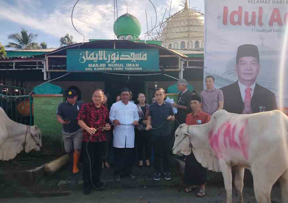Di hari raya Idul Adha ini kata Walikota Caroll, pemerintah kota Tomohon memberikan bantuan 3 ekor sapi untuk pengurus Masjid agung al-mujahidin matani, Masjid Nurul Iman Kampung Jawa dan Masjid At Taqwa Kinilow.