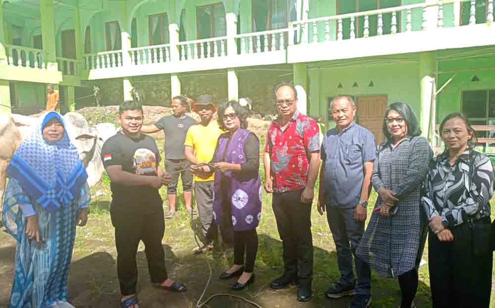 Hewan kurban tersebut di serahkan langsung kepada pengurus Masjid Agung Al-Mujahidin Matani,pengurus Masjid Nurul Iman Kampung Jawa dan pengurus Masjid At-Taqwa Kinilow.
