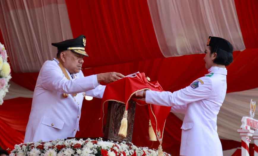 Manado-Gubernur Sulawesi Utara, Olly Dondokambey menjadi inspektur upacara peringatan Hari Ulang Tahun ke-78 tahun Kemerdekaan Republik Indonesia di halaman Kantor Gubernur Sulawesi Utara, Rabu (17/8/2022).