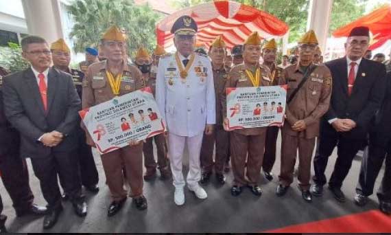 Gubernur Olly Dondokambey usai upacara HUT RI ke-78 melakukan pertemuan dengan para pejuang kemerdekaan dan menyerahkan secara langsung secara simbolis bantuan sebesar Rp. 500.000 per orang untuk anggota legiun Veteran Republik Indonesia (LVRI) Sulut.