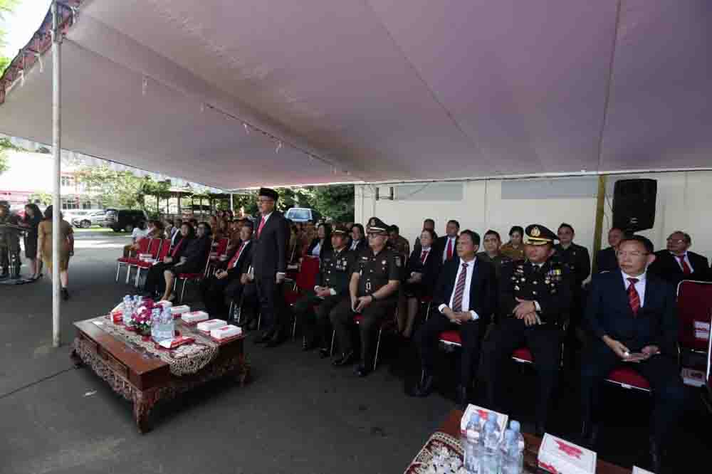 Hadir juga Kapolres Tomohon AKBP. Lerry Tutu, S.I.K., M.M. bersama Jajaran Polres Tomohon, Kasdim 1302 Minahasa Mayor Inf. Daeng Pasaka, S.E., Kasie Intel Kejaksaan Negeri Tomohon Ivan Roring, S.H., M.H., Ketua Legiun Veteran Republik Indonesia Cabang Tomohon Bapak Chinse Lasut bersama Para anggota LVRI Tomohon, Sekretaris Daerah Kota Tomohon Edwin Roring, S.E., M.E. bersama Jajaran Pemerintah Kota Tomohon, serta Para ASN dan Tenaga Kontrak Se- Kota Tomohon.(*Advetorial)