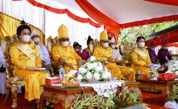 Upacara Adat Tulude Pemkot Bitung dihadiri Wali Kota dan Wakil Wali Kota Bitung, Maurits Mantiri-Hengky Honandar, Ketua TP PKK Kota Bitung, Ny Rita Mantiri Tangkudung, Sekretaris I TP PKK Kota Bitung, Ny Ellen Honandar Sondakh dan perwakilan Kemenparekraf RI serta Forkopimda.