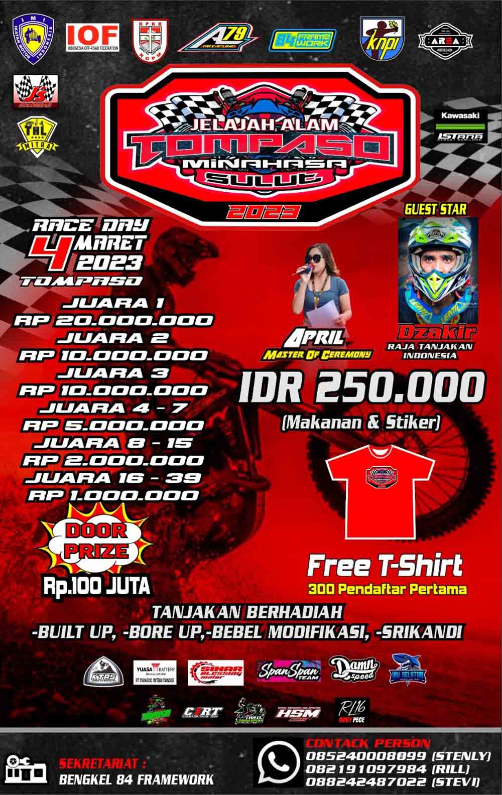 Iven yang akan dilaksanakan di Desa Liba Tompaso Minahasa, Sabtu 4 Maret 2023 ini, dipastikan akan lebih meriah dari iven sebelumnya. Pasalnya, Panitia Pelaksana iven yang diketuai oleh Pnt Stenly Sondakh ST ini, akan menghadirkan Bintang Tamu yakni Legenda Raja Tanjakan Indonesia, Dzakir dari Jawa Timur, yang kini tergabung pada Tim “Hiu Selatan”, milik Law Agwam yang dijuliki “Presiden Trail Indonesia”.