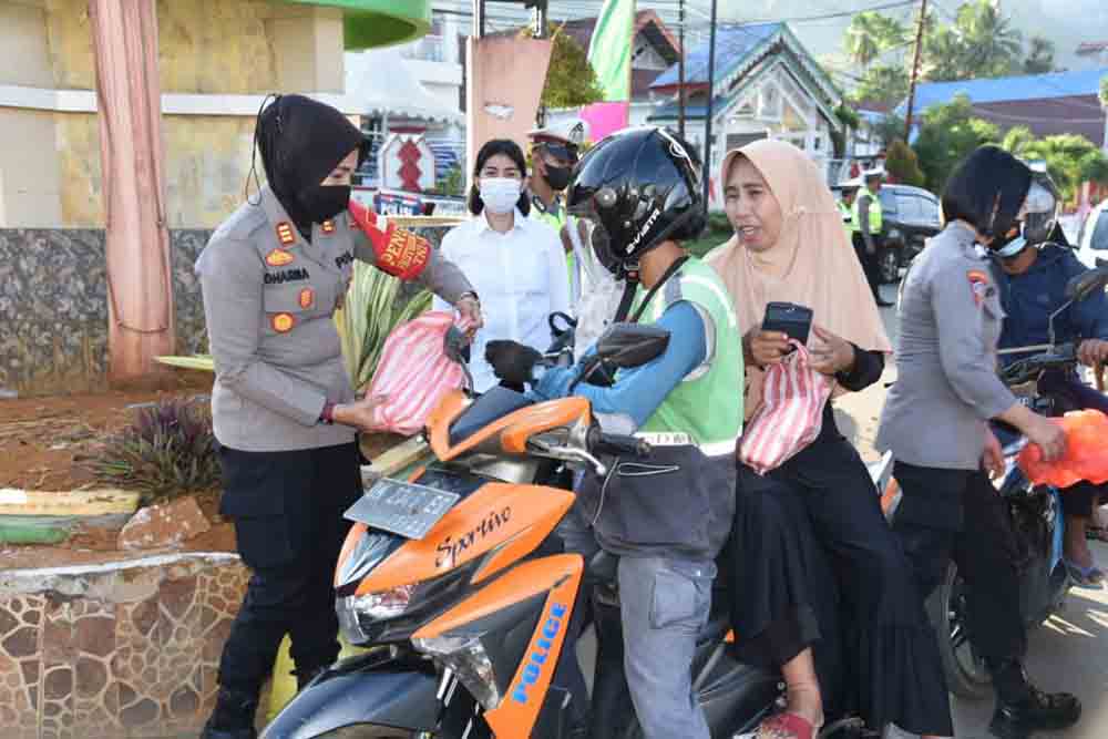 Sebanyak 150 dos Takjil dibagikan dalam kegiatan yang dipimpin oleh Kabag SDM Akp Dharmawaty bersama personel Polwan Polres Morowali Utara dan personel Satlantas tersebut.